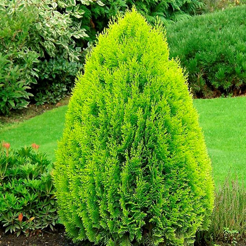 Туя восточная обладает плотной и красивой кроной конусовидной формы. Листва насыщенного зелёного цвета с золотистым оттенком, особенно яркая весной и летом. Этот сорт туи отличается высокой устойчивостью к засухе и морозам, что делает его идеальным выбором для российского климата.